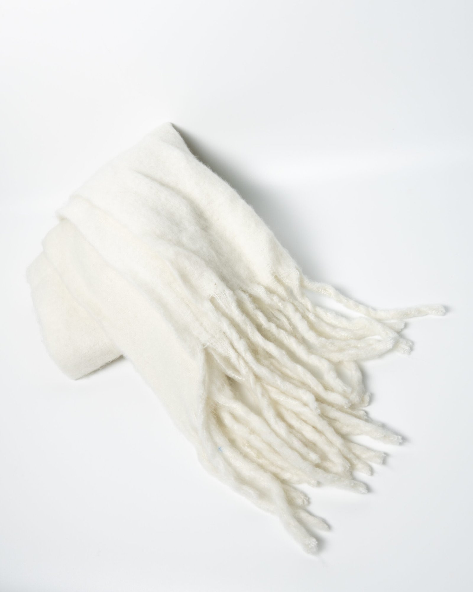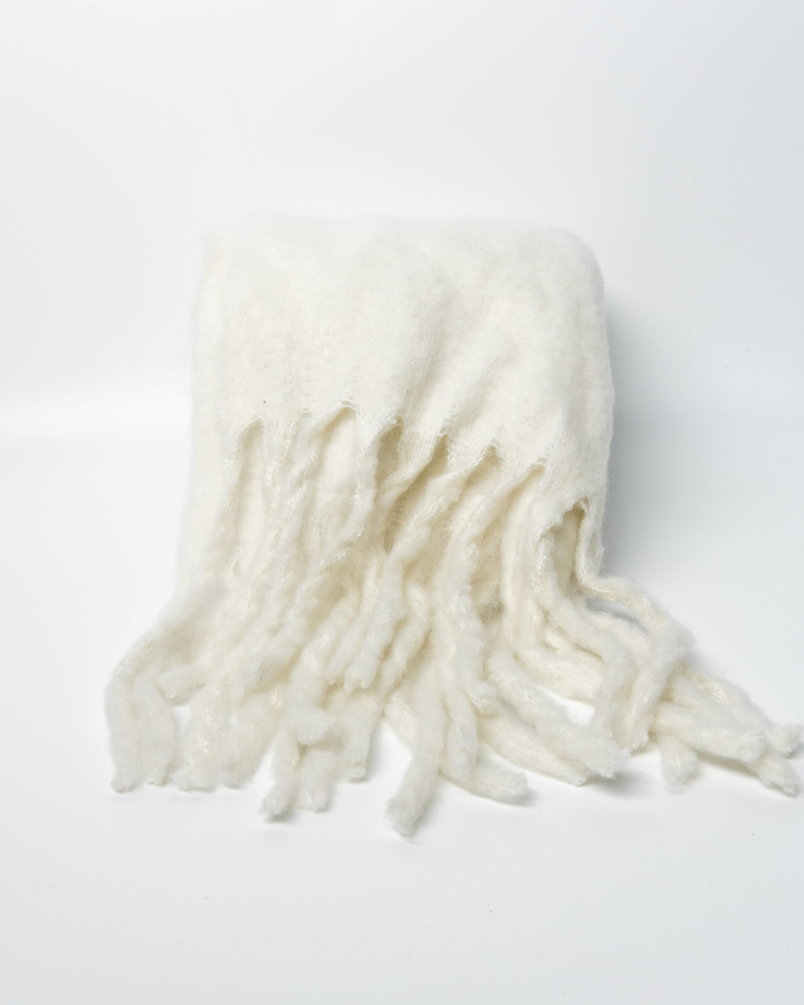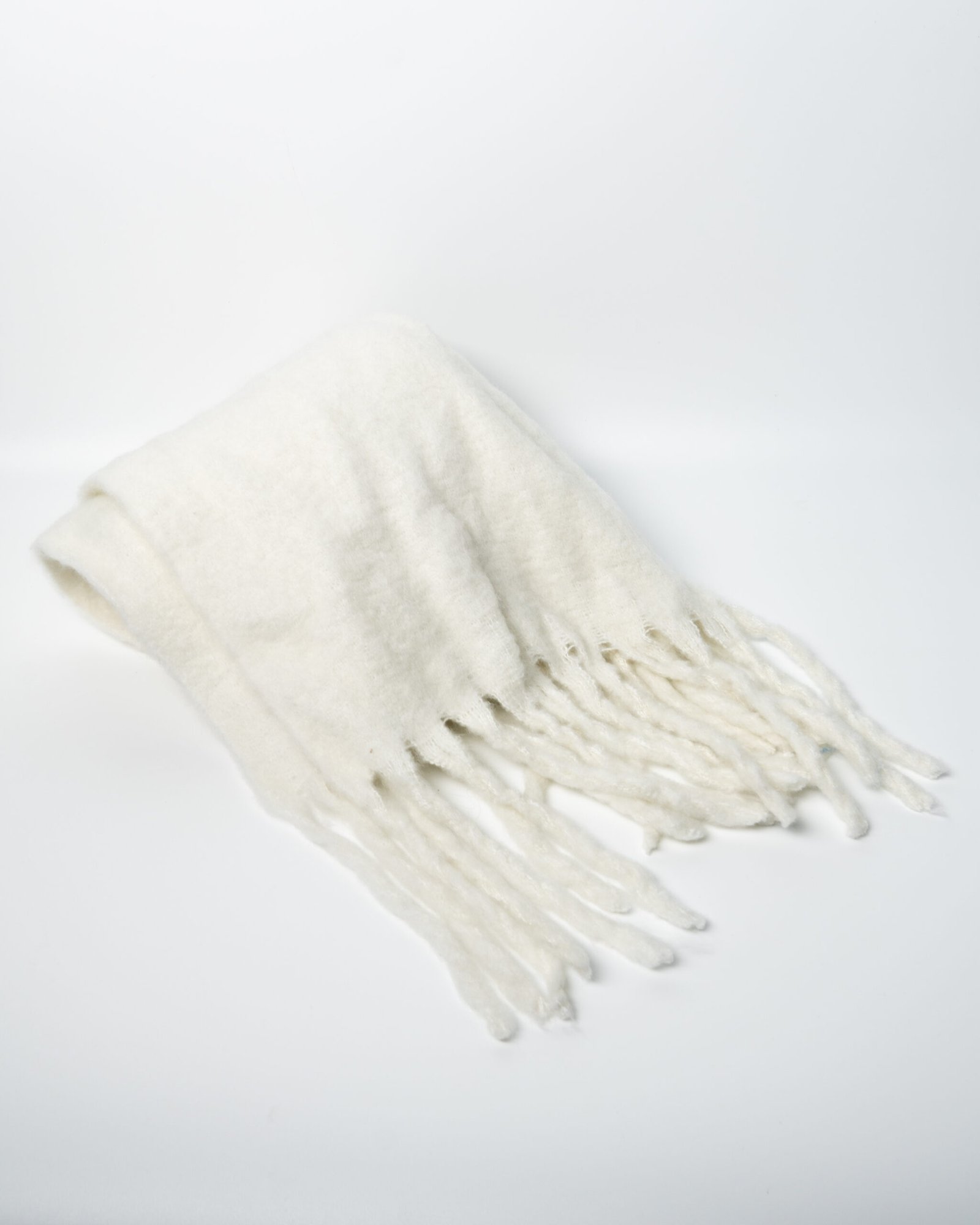 Ανακάλυψε το απόλυτο αξεσουάρ για τις κρύες ημέρες του χειμώνα: το μακρύ μάλλινο κασκόλ σε κλασική άσπρη απόχρωση. Μοναδικά απαλό και εξαιρετικά ζεστό, είναι η ιδανική επιλογή για να ολοκληρώσεις κάθε σου χειμερινό outfit με στυλ και άνεση.